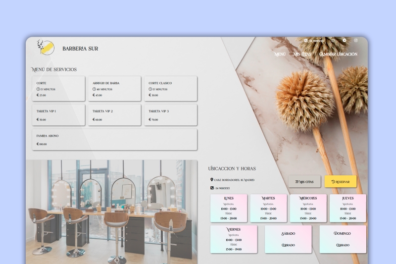 La página de su cafetería o restaurante se genera automáticamente tan pronto como te conectas al sistema. Puedes elegir cualquiera de nuestros temas para su página. Sus clientes podrán reservar o cancelar una cita instantáneamente.
